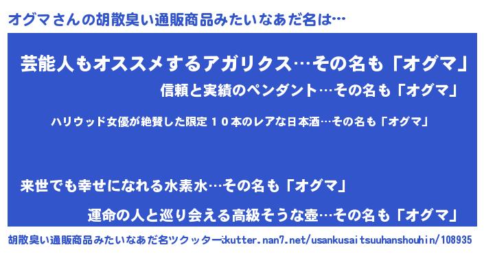 | 意味不明あだ名 | 『住所不定無職オグマ(39歳)』『自称オグマ』 |