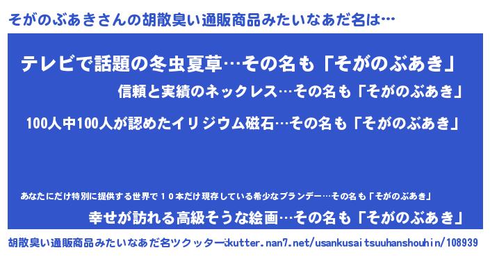 そがのぶあきさんの胡散臭い通販商品みたいなあだ名をツクッター!