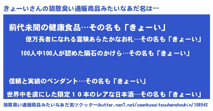 | ヒーロー風カッコイイあだ名 | 『正義の使者きょーい』『ネオキョーイ』 |