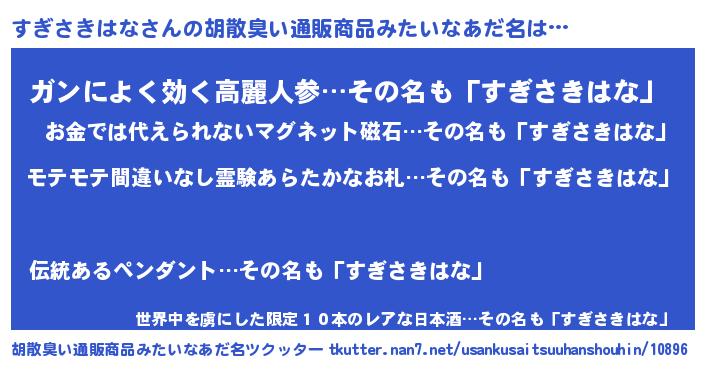 | ヒーロー風カッコイイあだ名 | 『スーパースギサキハナ』『仮面スギダー』 |