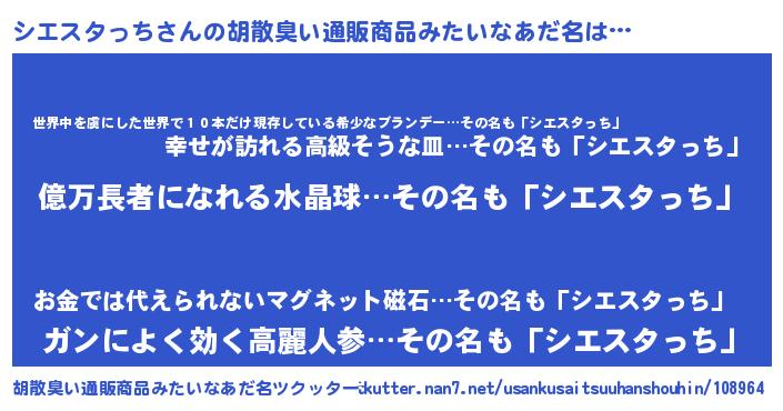 | 男性向けラノベタイトル風あだ名 | 『シエスタッチアートオンライン』 |