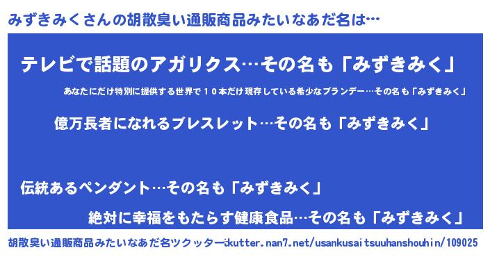 | ヘコむあだ名 | 『みずにー』『みずきみく(苦笑)』 |