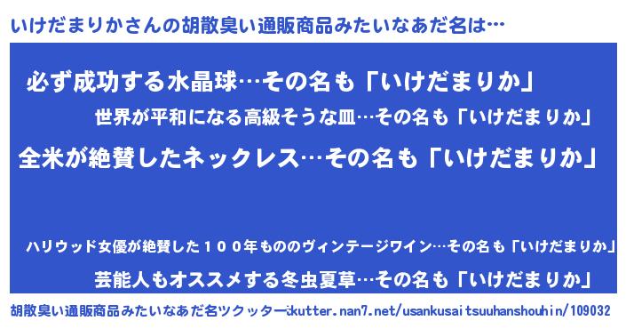 | 意味不明あだ名 | 『とにかく怪しいいけだまりか』 |