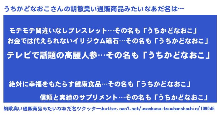 | ピコ太郎風あだ名 | 『ウコ一郎』『ウチ六郎』『ウウ太郎』 |