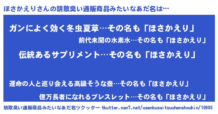| ヒーロー風カッコイイあだ名 | 『幻影騎士ホサ』『超時空戦士ホサカエリ』 |