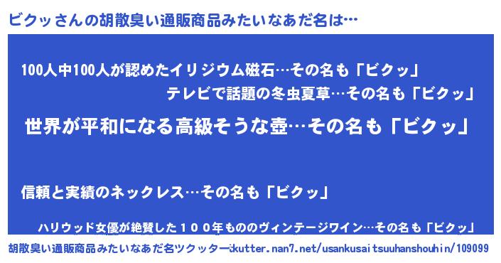 | 意味不明あだ名 | 『ビクッフォーエバー』『自称ビクッ』 |