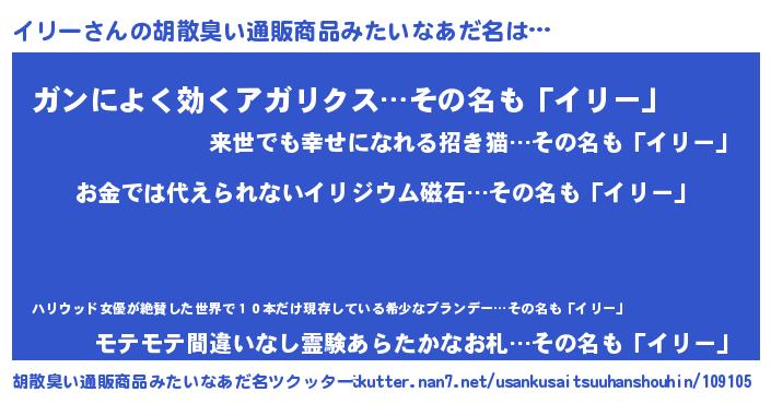 | ヘコむあだ名 | 『イリにゅー』『イリー(爆)』 |