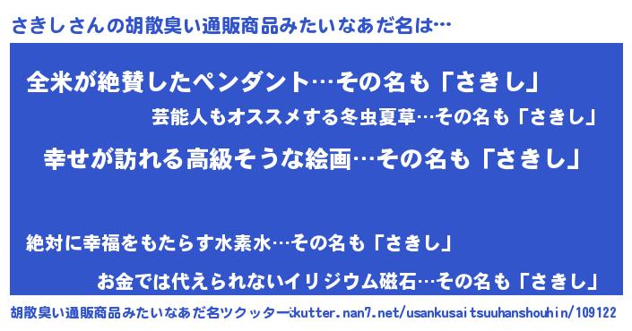 | 意味不明あだ名 | 『さきしフォーエバー』『自称さきし』 |
