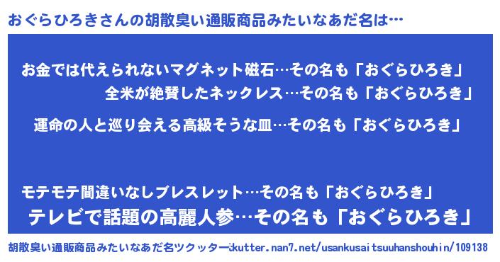 | 欧米人風あだ名 | 『おぐらひろきクリステル』 |