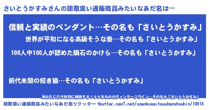 | 意味不明あだ名 | 『眠気覚ましガムさいとうかすみ味』 |