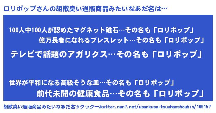 | 意味不明あだ名 | 『自称ロリポップ』『永久保存ロリポップ』 |