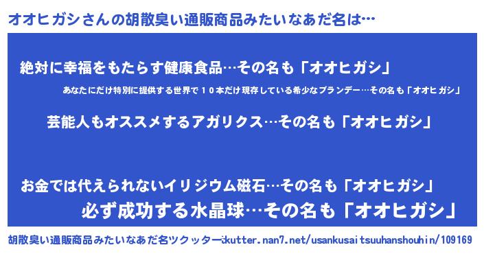 | 意味不明あだ名 | 『自称オオヒガシ』『永久保存オオヒガシ』 |