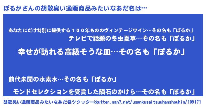 | ヘコむあだ名 | 『つくし』『ぽるか(小並感)』 |