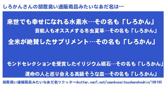 | ヘコむあだ名 | 『しろを』『しろかん(遠い目)』 |