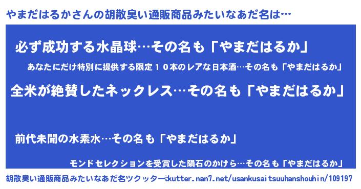 | 意味不明あだ名 | 『とにかく怪しいやまだはるか』 |