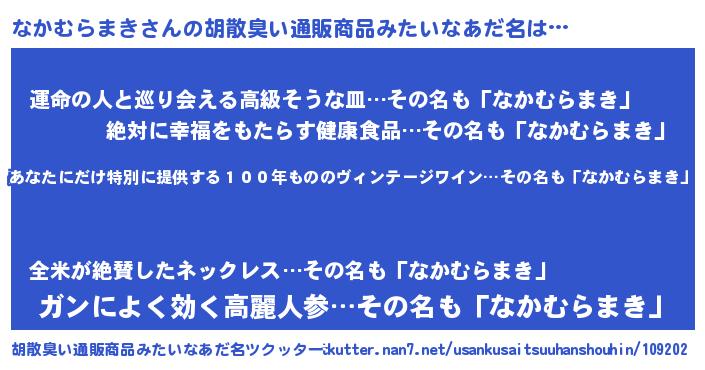 | ヘコむあだ名 | 『酢こんぶ』『なかむらまき(震え声)』 |