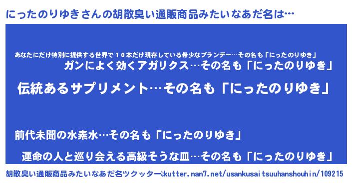 | 意味不明あだ名 | 『とにかく怪しいにったのりゆき』 |