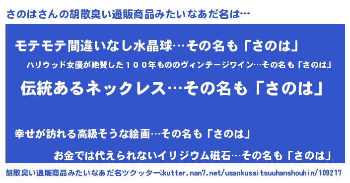 | 意味不明あだ名 | 『とにかく怪しいさのは』 |