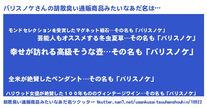 | 男性向けラノベタイトル風あだ名 | 『はたらくバリスノケさま!』 |