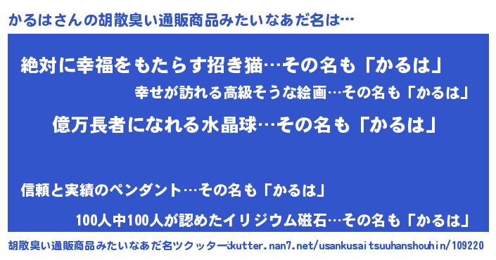 | ヘコむあだ名 | 『かるもー』『かるは(小並感)』 |