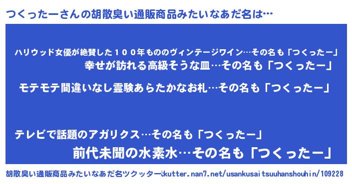 ヘコむあだ名 | 『つくっふぃ~』『つくったー(小並感)』 |