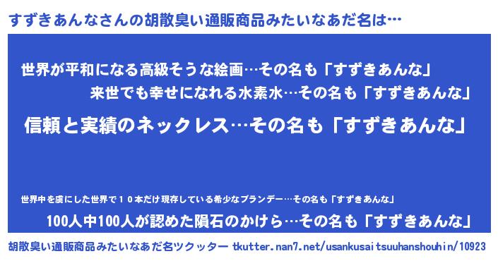 | 意味不明あだ名 | 『とにかく怪しいすずきあんな』 |