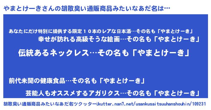 | 意味不明あだ名 | 『とにかく怪しいやまとけーき』 |