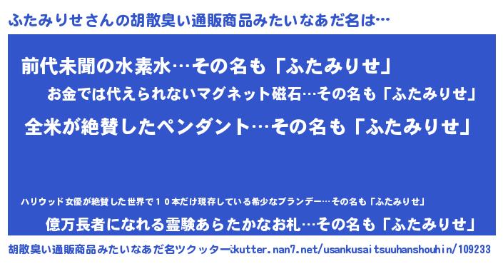 | 意味不明あだ名 | 『とにかく怪しいふたみりせ』 |