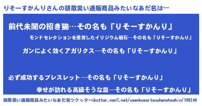 | 恥ずかしいあだ名 | 『リソースカンリデラックス』『りそちん』 |