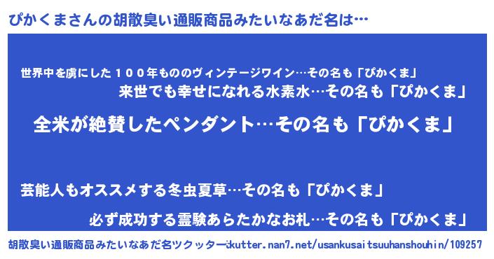 | 意味不明あだ名 | 『とにかく怪しいぴかくま』 |