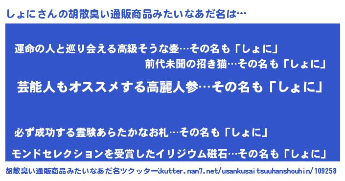 | 意味不明あだ名 | 『自称しょに』『しょにフォーエバー』 |