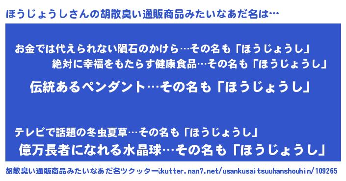 | ヒーロー風カッコイイあだ名 | 『魔戒騎士ホウ』『スーパーホウジョウシ』 |