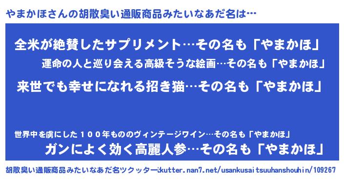 | ヘコむあだ名 | 『やまかほ(小並感)』『やまを』 |