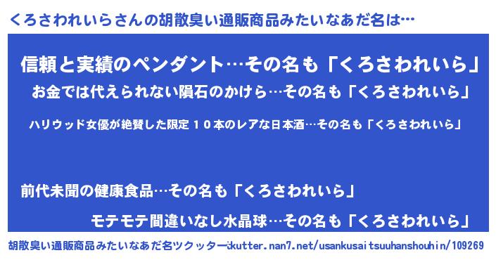 | 伝説のあだ名 | 『孤高の僧侶くろさわれいら』 |