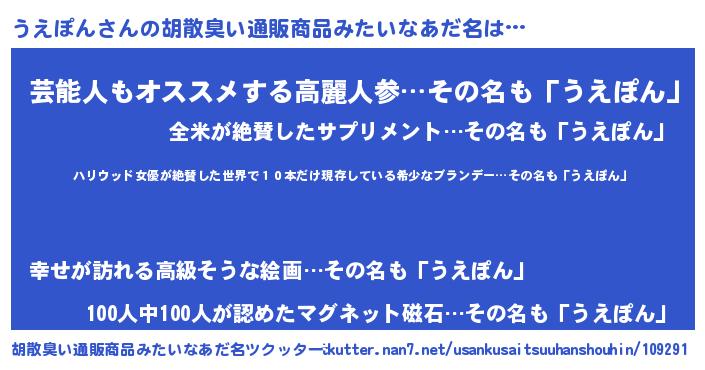 | 意味不明あだ名 | 『住所不定無職うえぽん(93歳)』 |