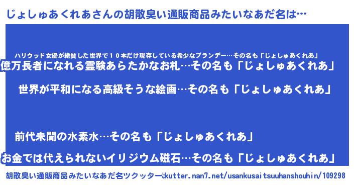 | 意味不明あだ名 | 『じょしゅあくれあフォーエバー』 |