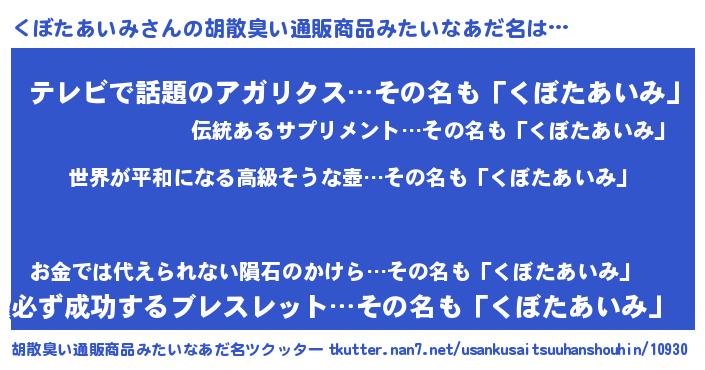 | 意味不明あだ名 | 『くぼたあいみフォーエバー』 |