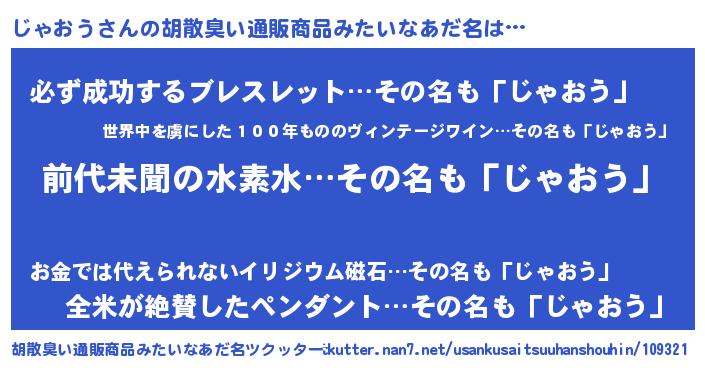 | ヘコむあだ名 | 『じゃおう(震え声)』『じゃにー』 |