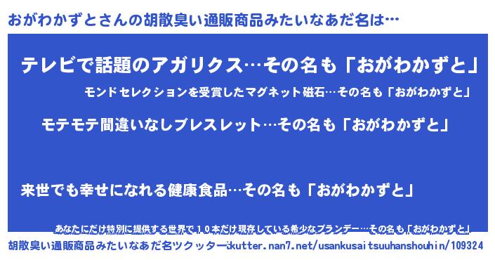 | 男性向けラノベタイトル風あだ名 | 『転生したらおがわかずとだった件』 |