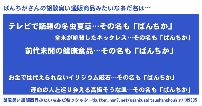 | 意味不明あだ名 | 『永久保存ばんちか』『自称ばんちか』 |