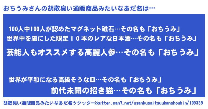 | 意味不明あだ名 | 『自称おちうみ』『永久保存おちうみ』 |