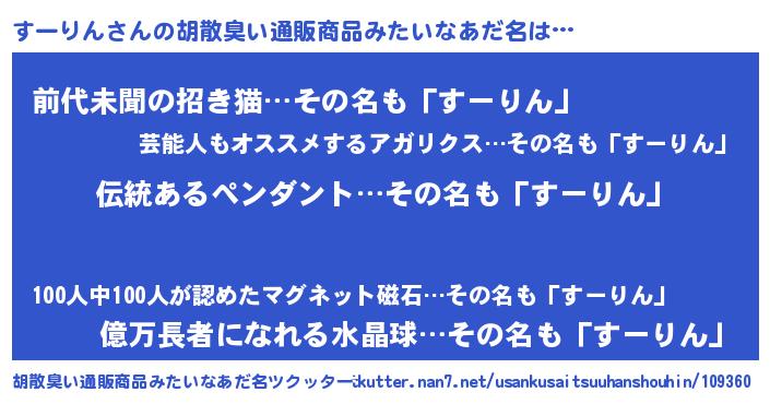 | ヘコむあだ名 | 『すーぷりん』『すーりん(笑)』 |