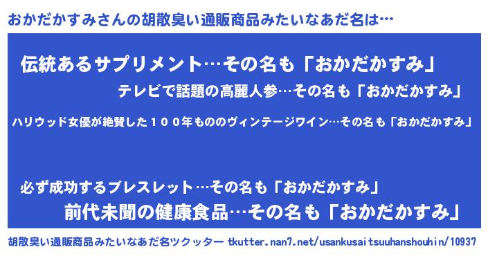 | 意味不明あだ名 | 『住所不定無職おかだかすみ(12歳)』 |