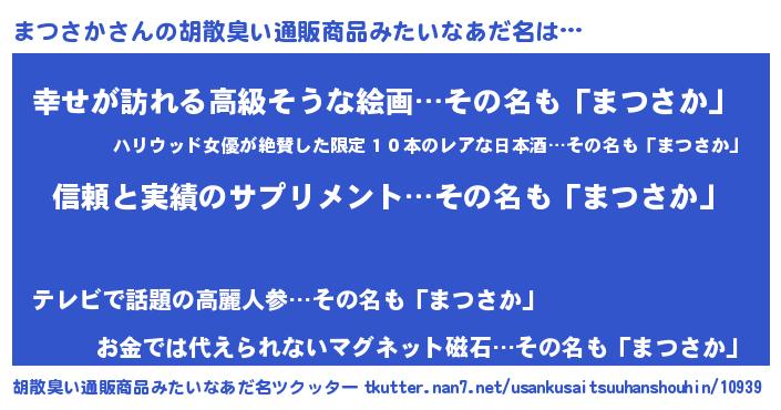 | ヘコむあだ名 | 『まつお』『牛乳』『まつさか(苦笑)』 |
