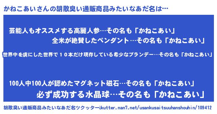 | 欧米人風あだ名 | 『ダレノガレかねこあい』 |