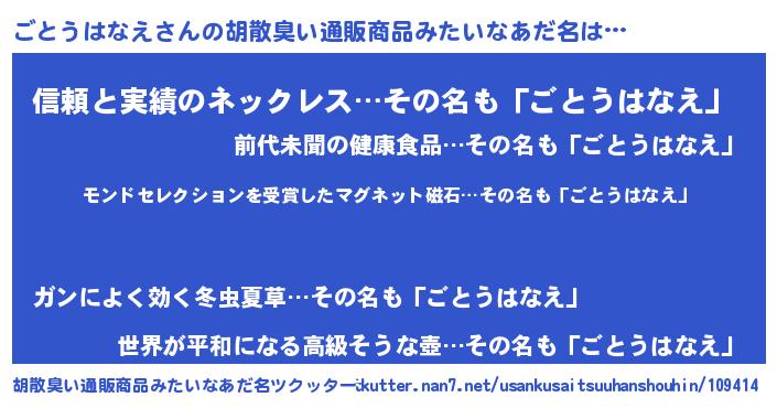 | 伝説のあだ名 | 『救世主となる技術者ごとうはなえ』 |