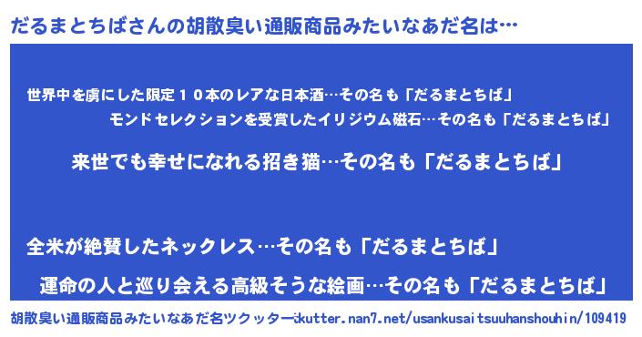 | 意味不明あだ名 | 『永久保存だるまとちば』 |