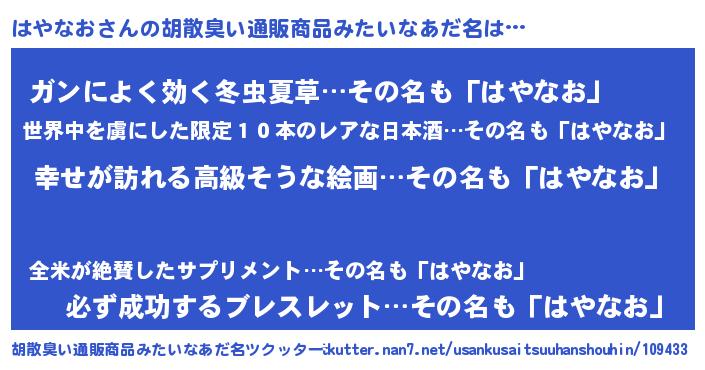 | 意味不明あだ名 | 『はやなおフォーエバー』『自称はやなお』 |