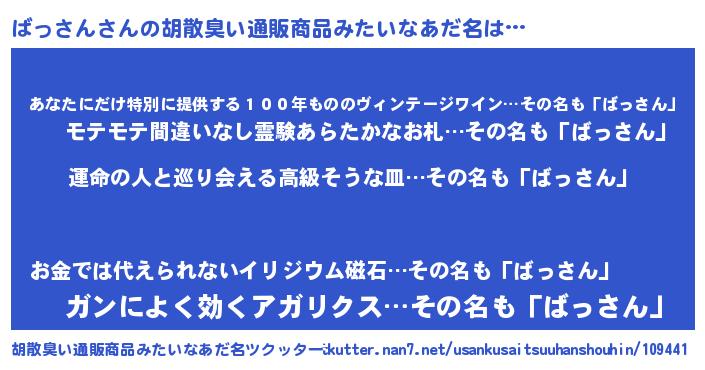 | 意味不明あだ名 | 『ばっさんフォーエバー』『自称ばっさん』 |