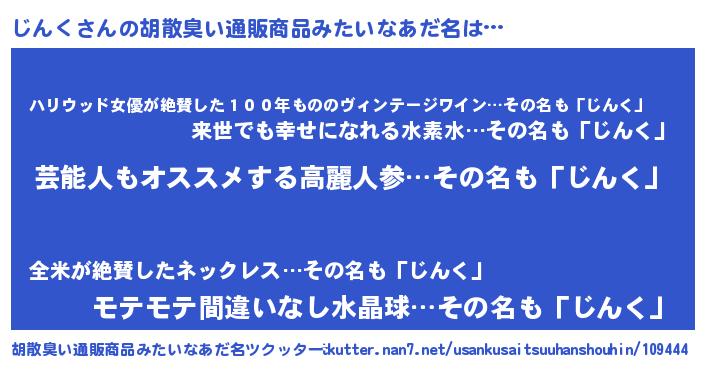 | 意味不明あだ名 | 『自称じんく』『住所不定無職じんく(40歳)』 |
